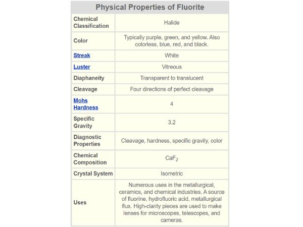 Tính chất vật lý của Fluorite