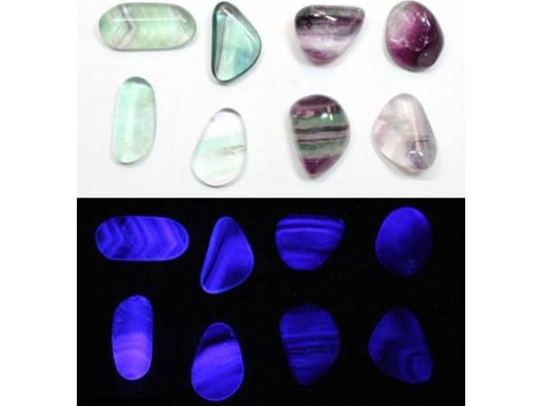 Fluorit thường phát sáng màu xanh tím dưới tia cực tím sóng ngắn và tia cực tím sóng dài. Một số mẫu vật được biết là phát sáng màu kem hoặc màu trắng. Nhiều mẫu vật không phát huỳnh quang. Sự phát huỳnh quang trong fluorit được cho là xảy ra khi một lượng nhỏ yttri, europium, samarium hoặc các nguyên tố khác thay thế canxi trong cấu trúc khoáng vật fluorit.