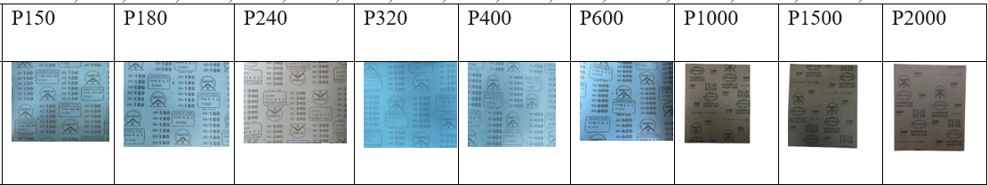Độ hạt nhám: Từ #60, # 80, #100, #120, #150, #180, #240, #320, #400, #600, #800, #1000, #1200, #1500, #2000, #2500