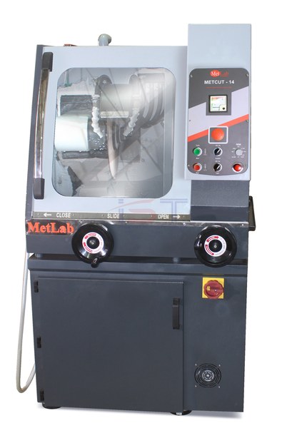 Máy cắt chính xác Metcut 14 luôn đảm bảo an toàn trong quá trình sử dụng bởi buồng cắt thiết kế có cửa kính dạng trượt ngang, bên trong buồng cắt có tích hợp đèn chiếu sáng, giúp người sử dụng dễ dàng quan sát mẫu bên trong buồng cắt.